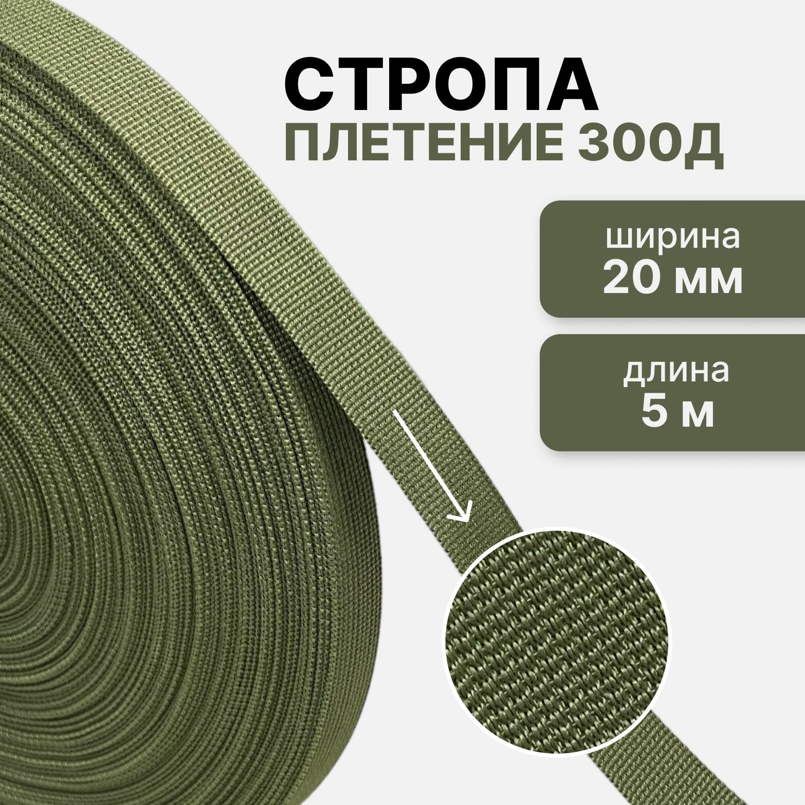 Купить Стропа текстильная ременная лента, ширина 20 мм, (плетение 300Д), хаки, 5м