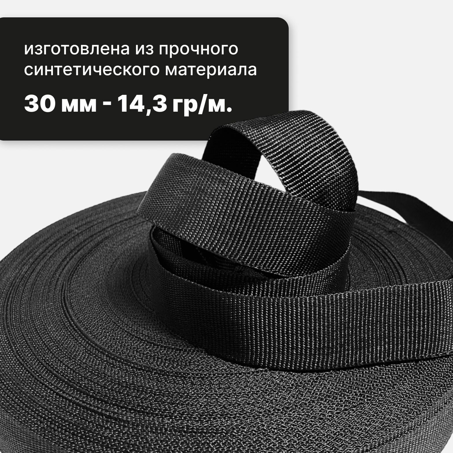 Стропа текстильная ременная лента, ширина 30 мм, (плетение 300Д), черный, 10м