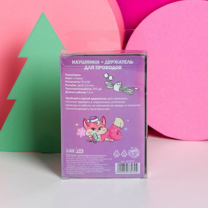 Наушники и держатель для проводов «Время для счастья»,микрофон, 1,2 м, набор интересное: