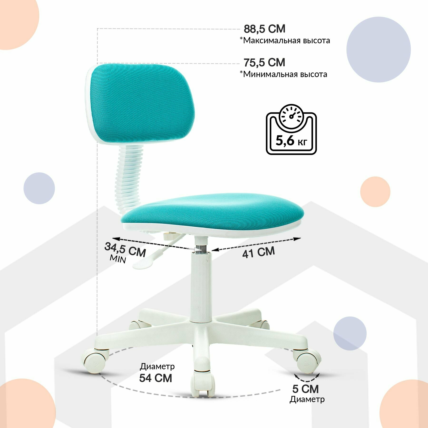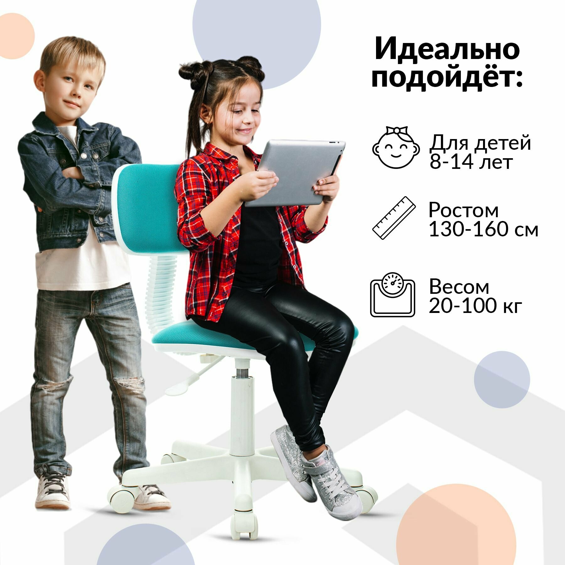 Стул на колесиках для школьников / Кресло компьютерное, голубое