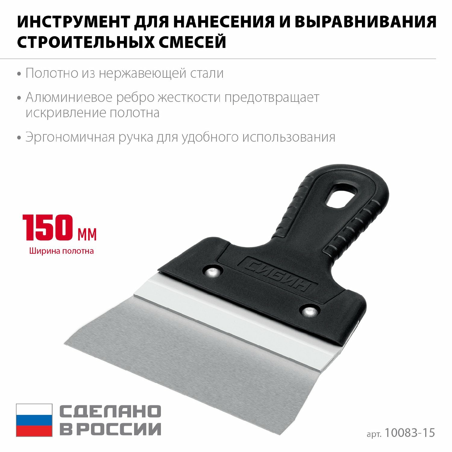 СИБИН 150 мм, усиленный фасадный нержавеющий шпатель с алюминиевой направляющей (10083-15) (10083-15) интересное: