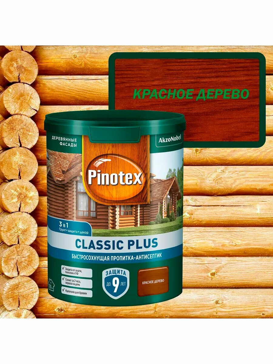 Пропитка-Антисептик Pinotex Classic Plus 3 в 1 0.9л Красное Дерево для Защиты Древесины до 9 лет / Пинотекс Классик Плюс.*