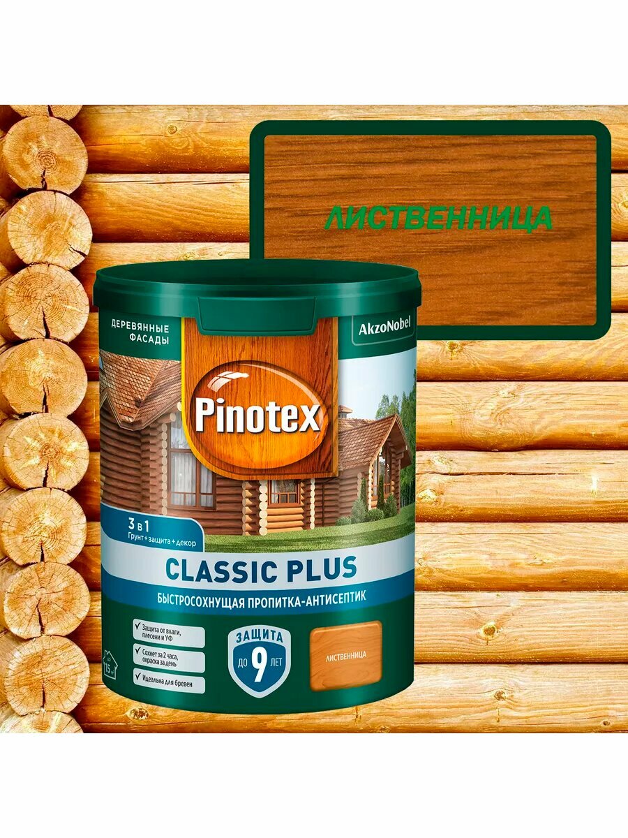 PINOTEX CLASSIC PLUS пропитка-антисептик быстросохнущая 3 в 1, лиственница (0,9л)