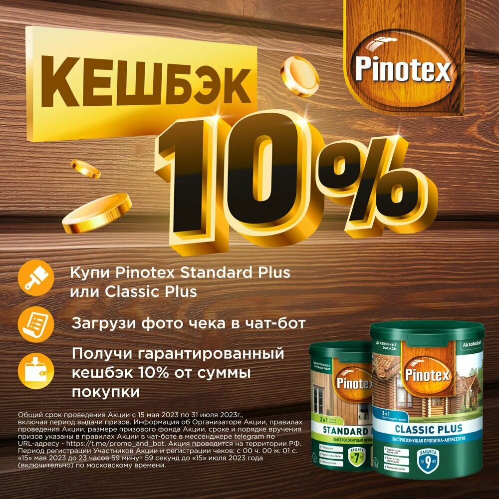 Пропитка-антисептик быстросохнущая для защиты древесины Pinotex Classic Plus, полуматовая (9л) бесцветный и под колеровку
