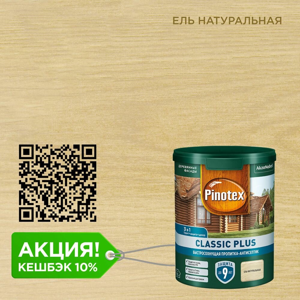 Pinotex Classic Plus (0,9 л Ель натуральная ) Пинотекс Классик Плюс Быстросохнущая пропитка-антисептик на гибридной основе 3 в 1