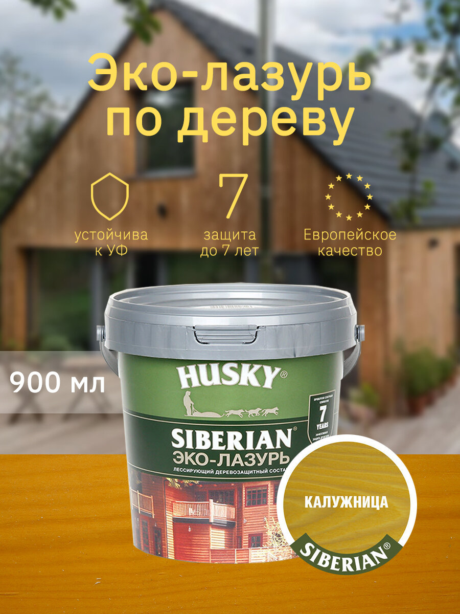 Купить HUSKY SIBERIAN Эко-Лазурь для дерева полуматовая калужница (сосна) (0,9л)