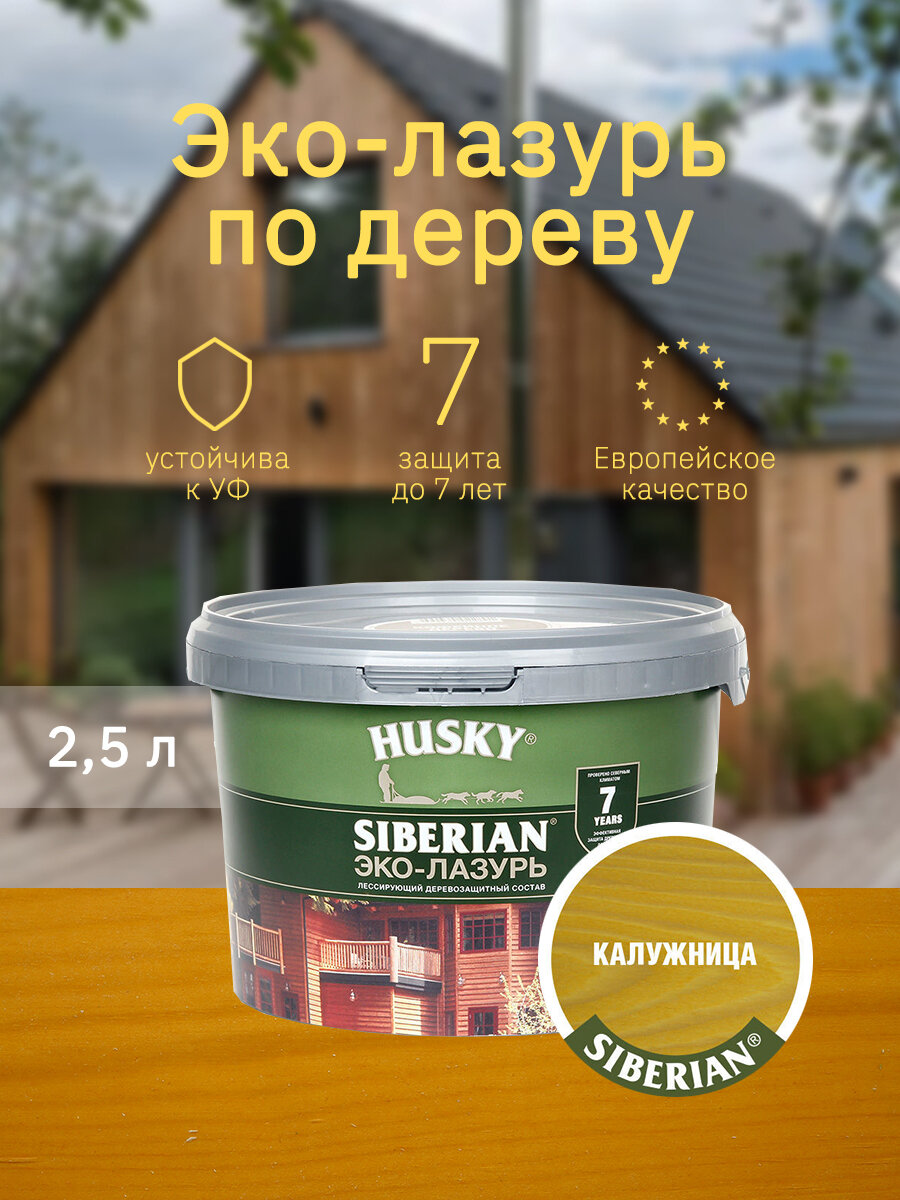 Хаски / Эко-Лазурь для древесины, пропитка антисептик для дерева полуматовая HUSKY SIBERIAN калужница (сосна) (2,5л)