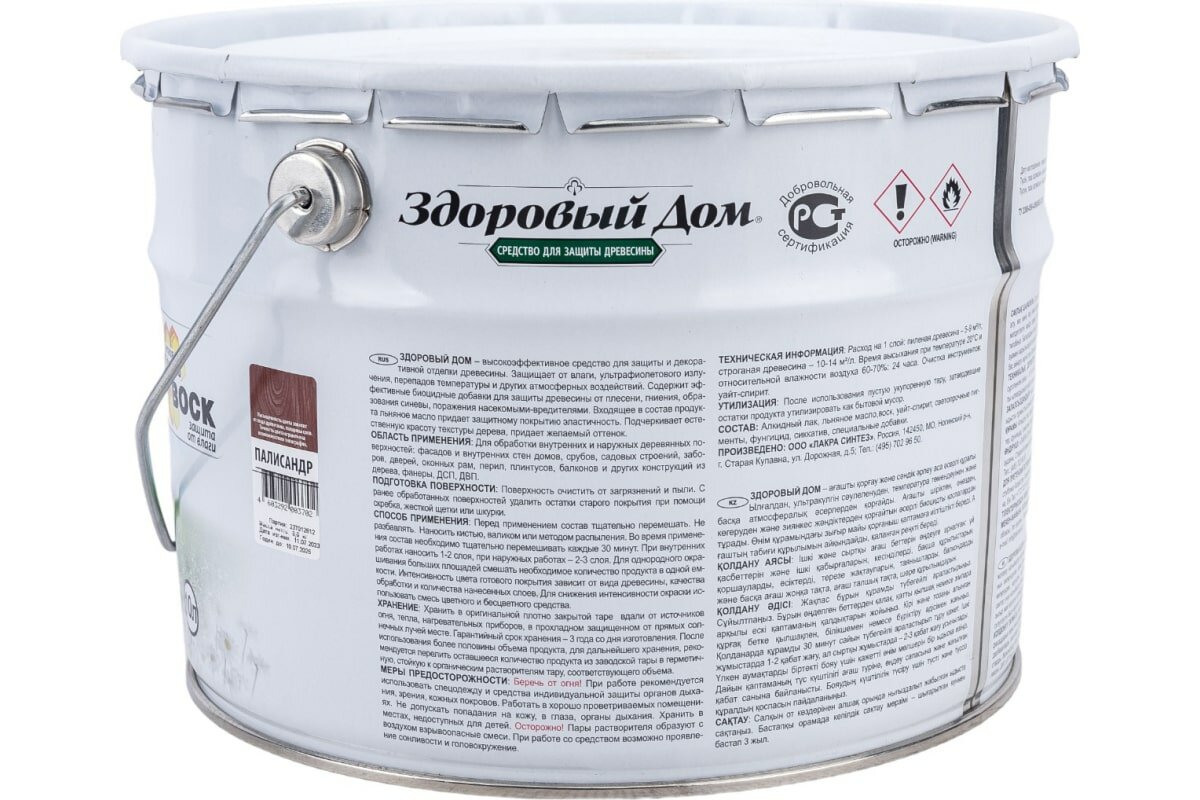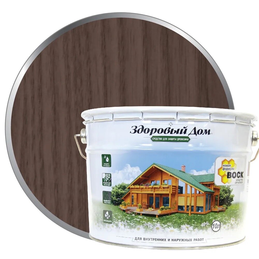 Купить Средство для Защиты Древесины Здоровый Дом 10л Палисандр, Алкидная для Внутренних и Наружных Работ.