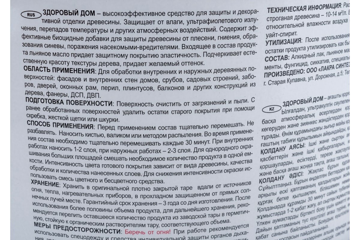 | Дополнительная информация | расход: пиленая: 5-8 м²/л, строганая: 10-14 м²/л; хранение: 3 года в оригинальной таре при температуре до 30°С; допускается неоднократное замораживание продукта |