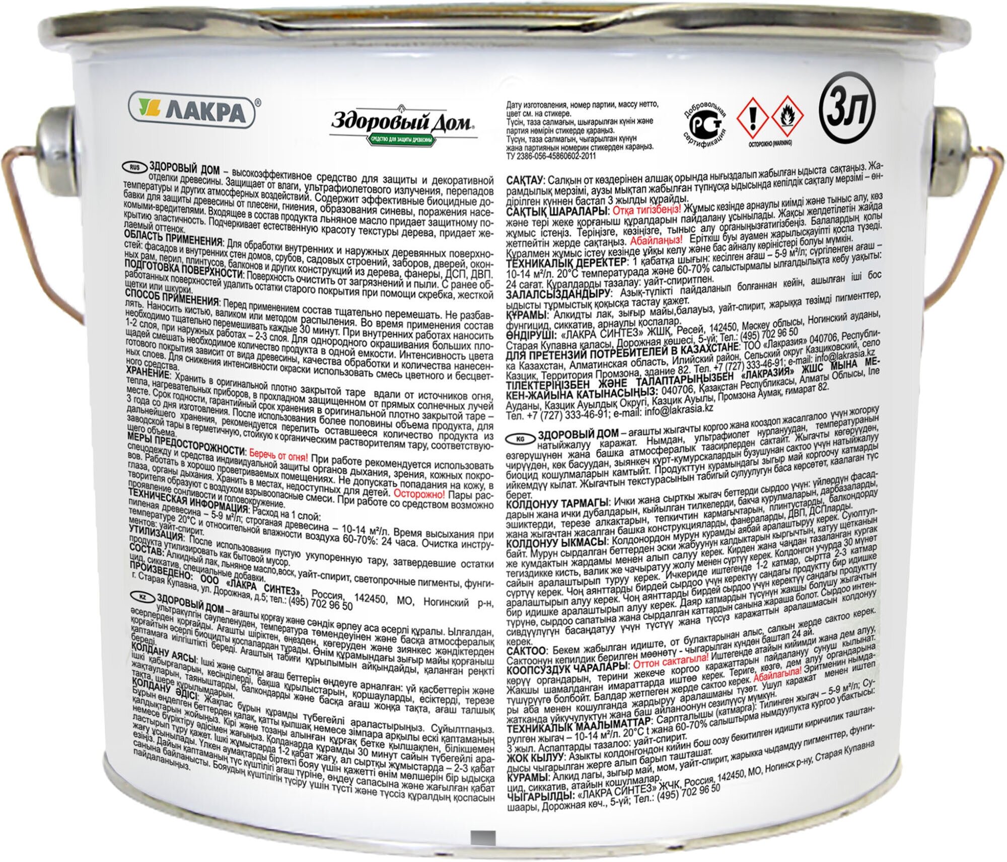 Средство деревозащитное Лакра Здоровый дом 3 л бесцветный
