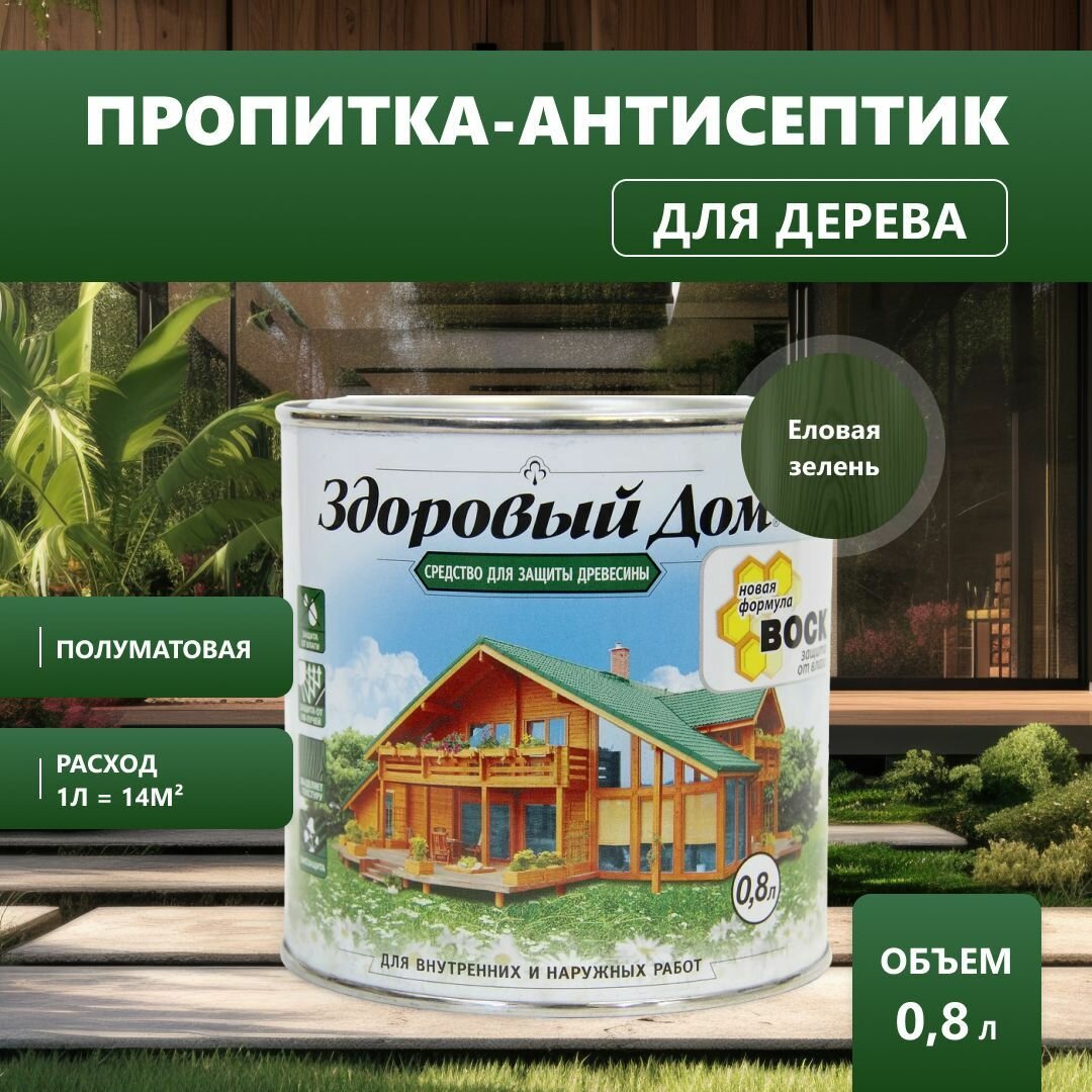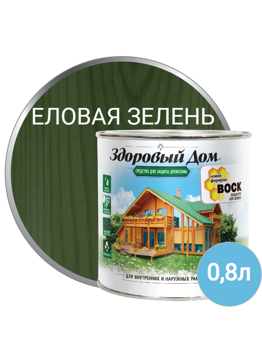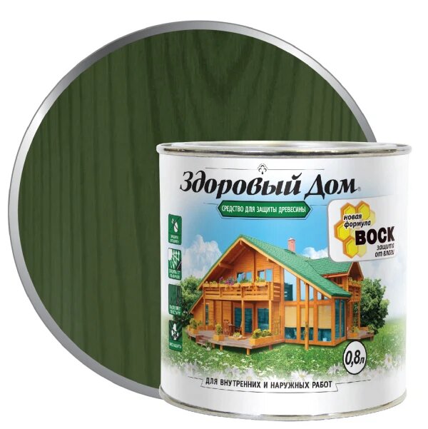 Средство для Защиты Древесины Здоровый Дом 0.8л Еловая Зелень, Алкидная для Внутренних и Наружных Работ.