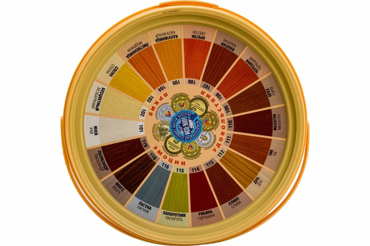 Сенеж аквадекор. Цвет 106 Орегон. Тонирующий антисептик на алкидно-акрилатной основе с УФ фильтром и воском для долговременной защиты и отделки древесины. Ведро массой нетто 2,5 кг.