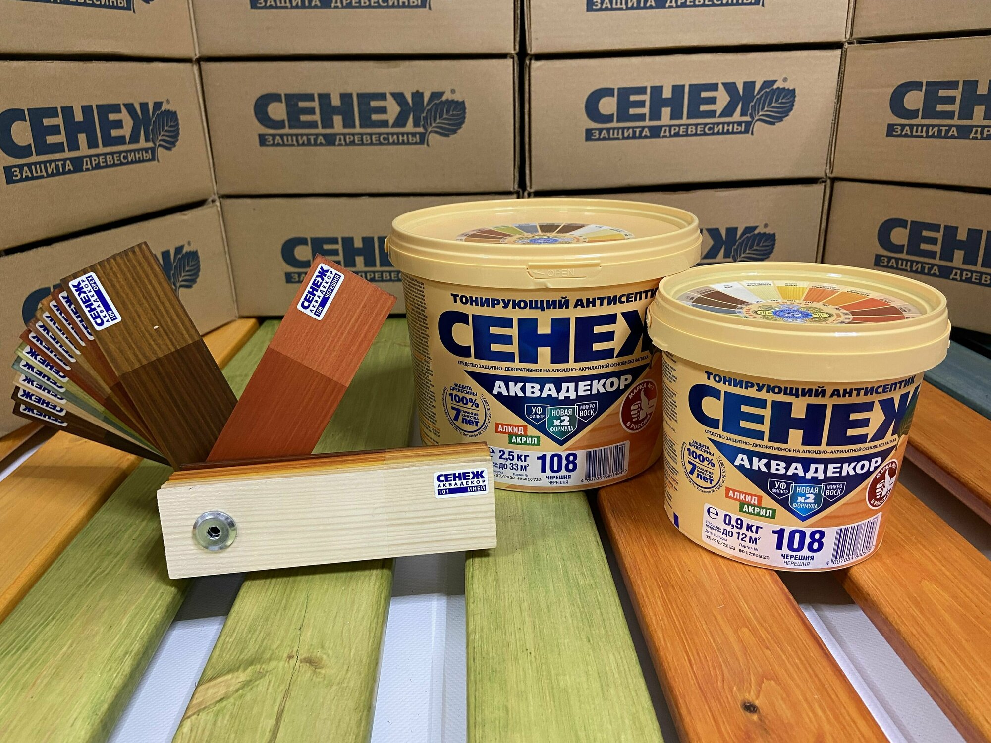 Сенеж аквадекор. Цвет 108 Черешня. Тонирующий антисептик на алкидно-акрилатной основе с УФ фильтром и воском для долговременной защиты и отделки древесины. Ведро массой нетто 2,5 кг.