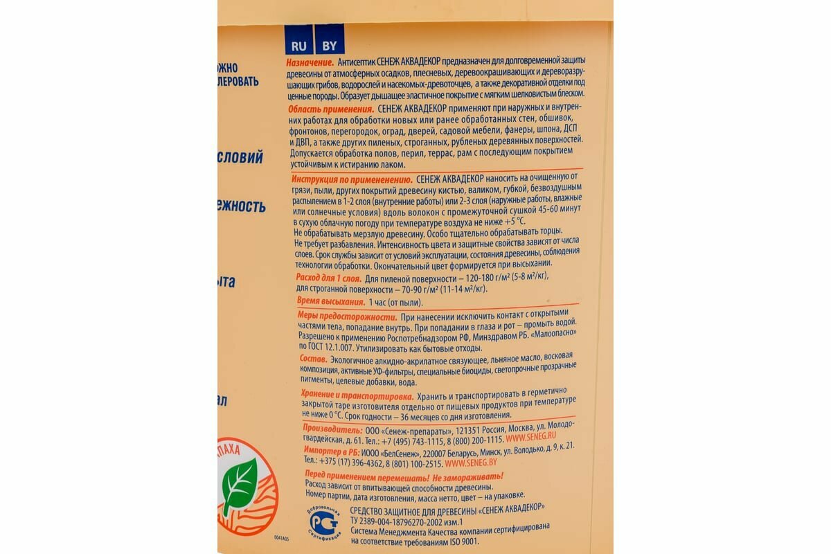 Сенеж Аквадекор орегон 9 кг строительный антисептик