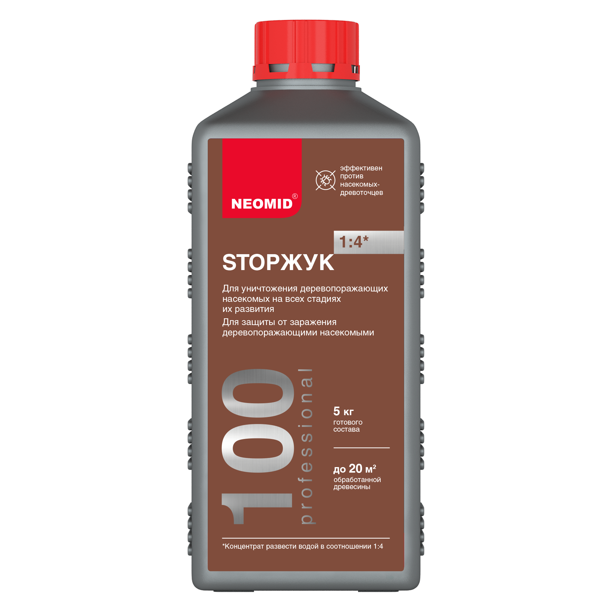 Купить NEOMID STOP ЖУК 100 средство для защиты древесины и уничтожения жука, концентрат 1:4 (1 л)