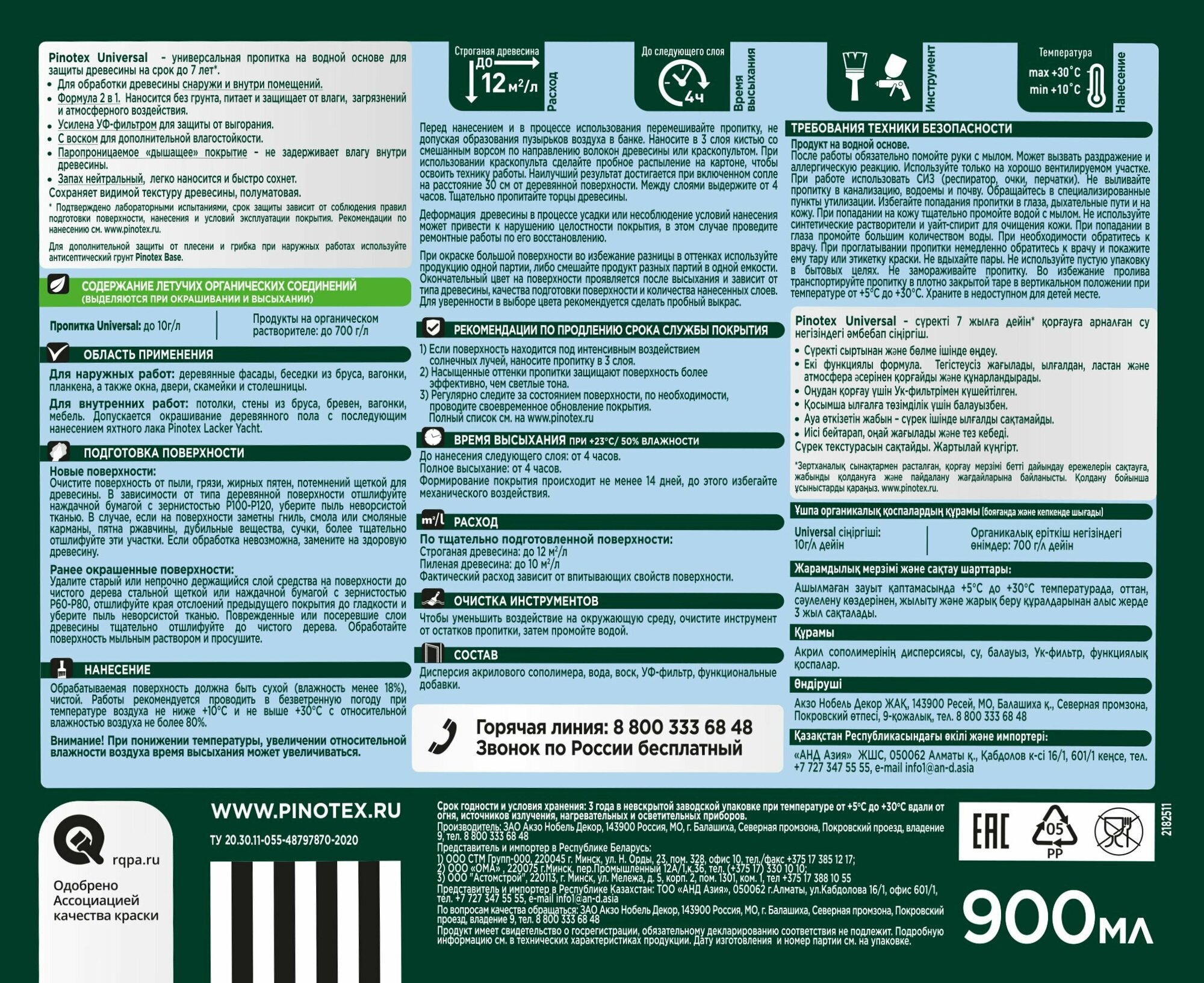 Универсальная пропитка на водной основе 2в1 для древесины Pinotex Universal (0.9 л) бесцветный