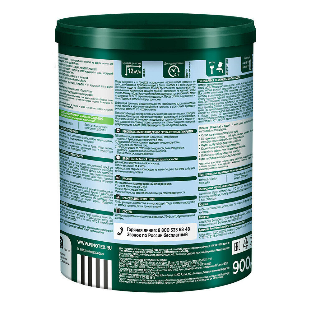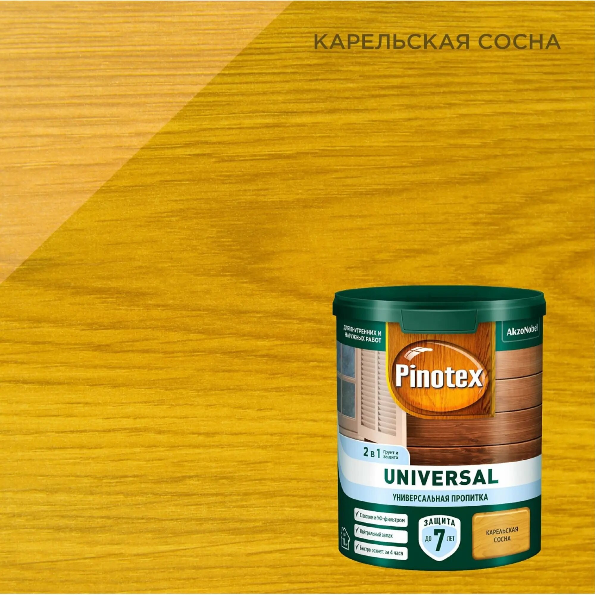 Универсальная пропитка на водной основе 2в1 для древесины Pinotex Universal полуматовая (0,9л) карельская сосна