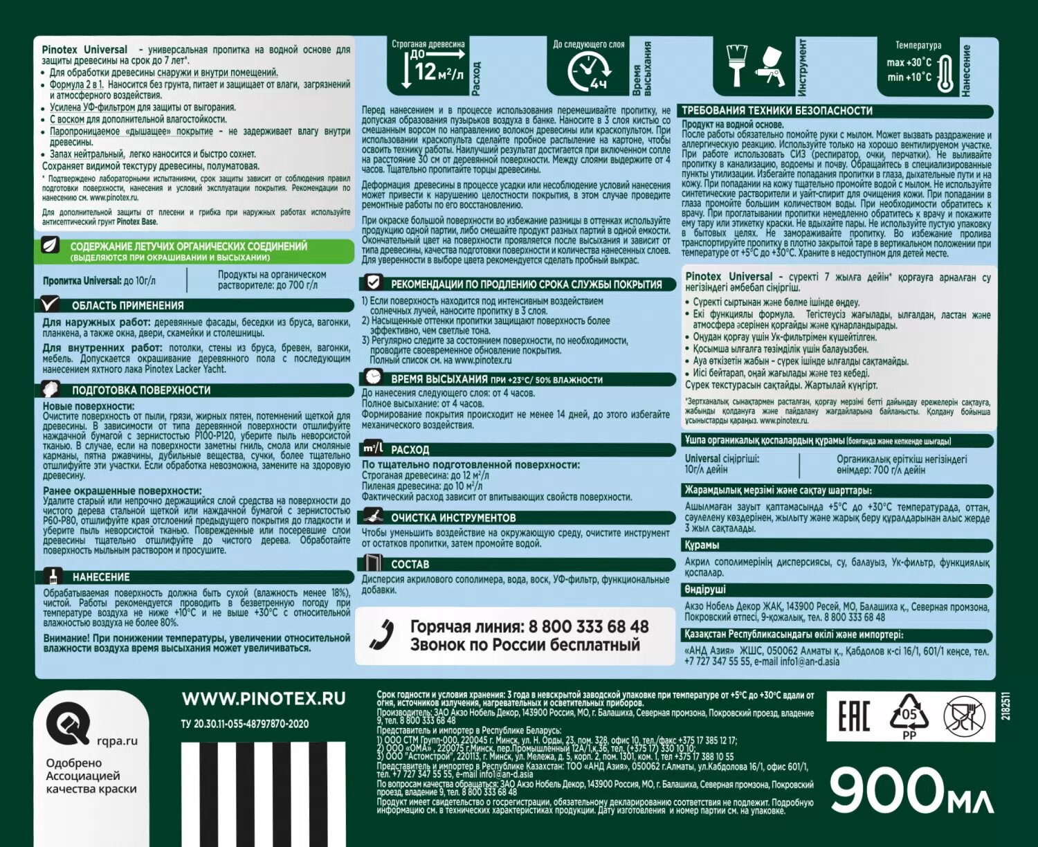 Сохранитьсредство деревозащитное PINOTEX Universal 0,9л береза, арт.5620705 интересное: