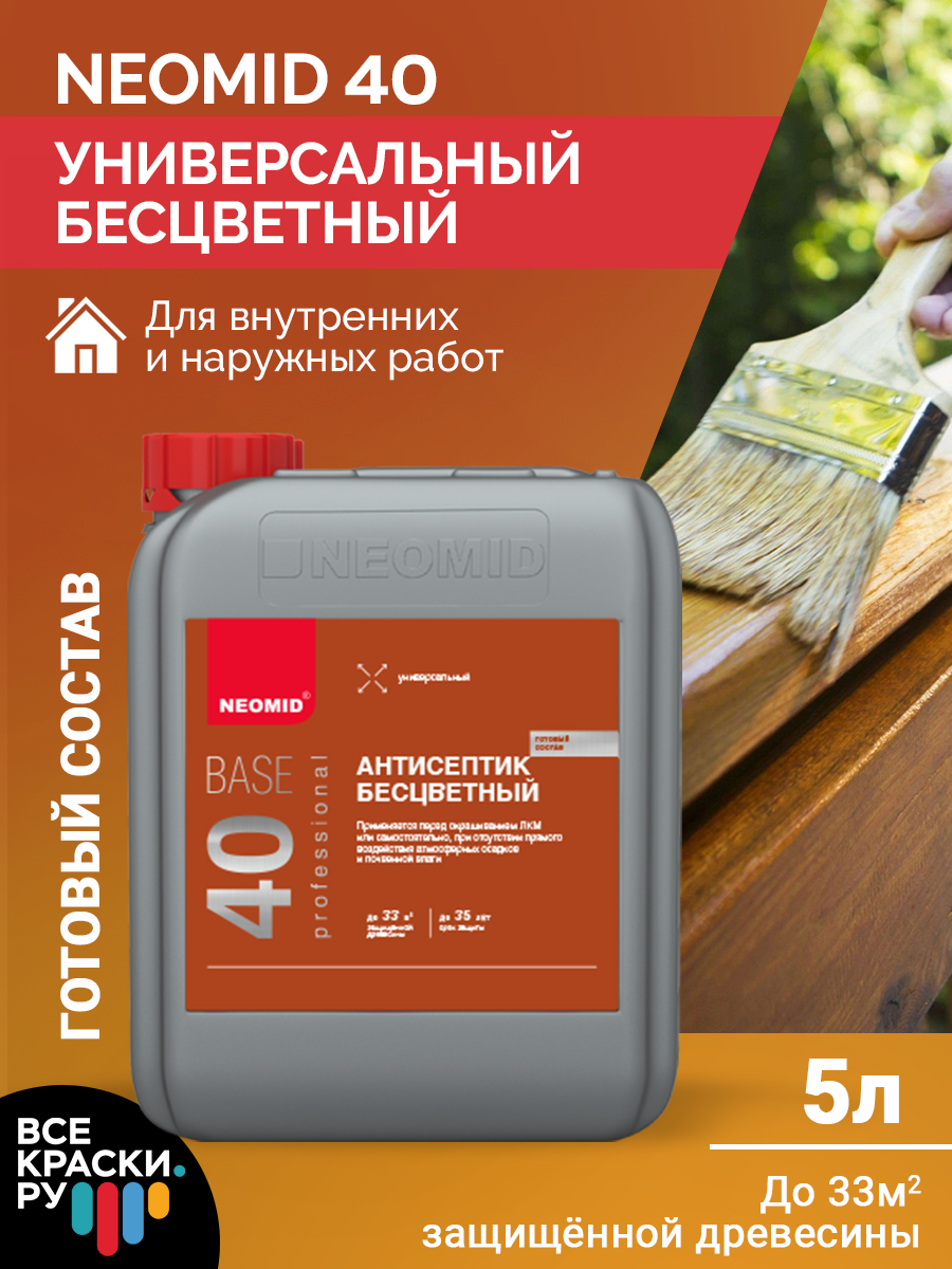 Универсальный Антисептик Neomid 40 Base ECO 5л Бесцветный для Наружных и Внутренних Работ / Неомид 40 Бейз Эко.
