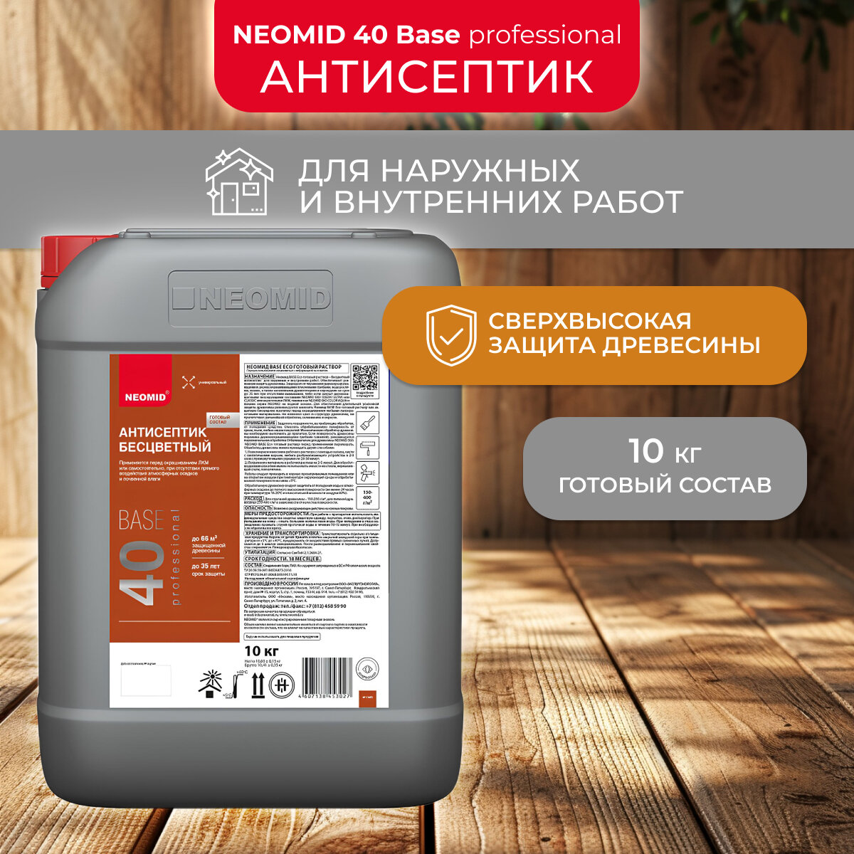 Универсальный Антисептик Neomid 40 Base ECO 10л Бесцветный для Наружных и Внутренних Работ / Неомид 40 Бейз Эко.