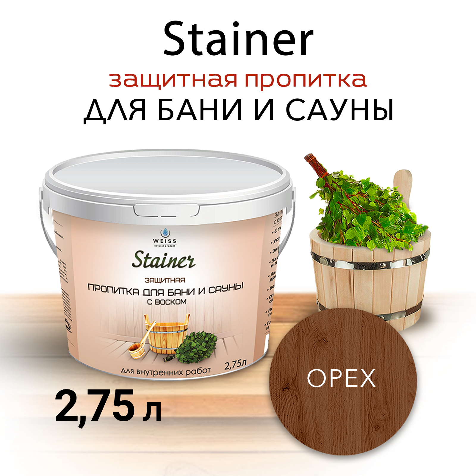 Защитная пропитка для бани и сауны с воском Stainer, 2,75л Дуб 048,защитная лазурь
