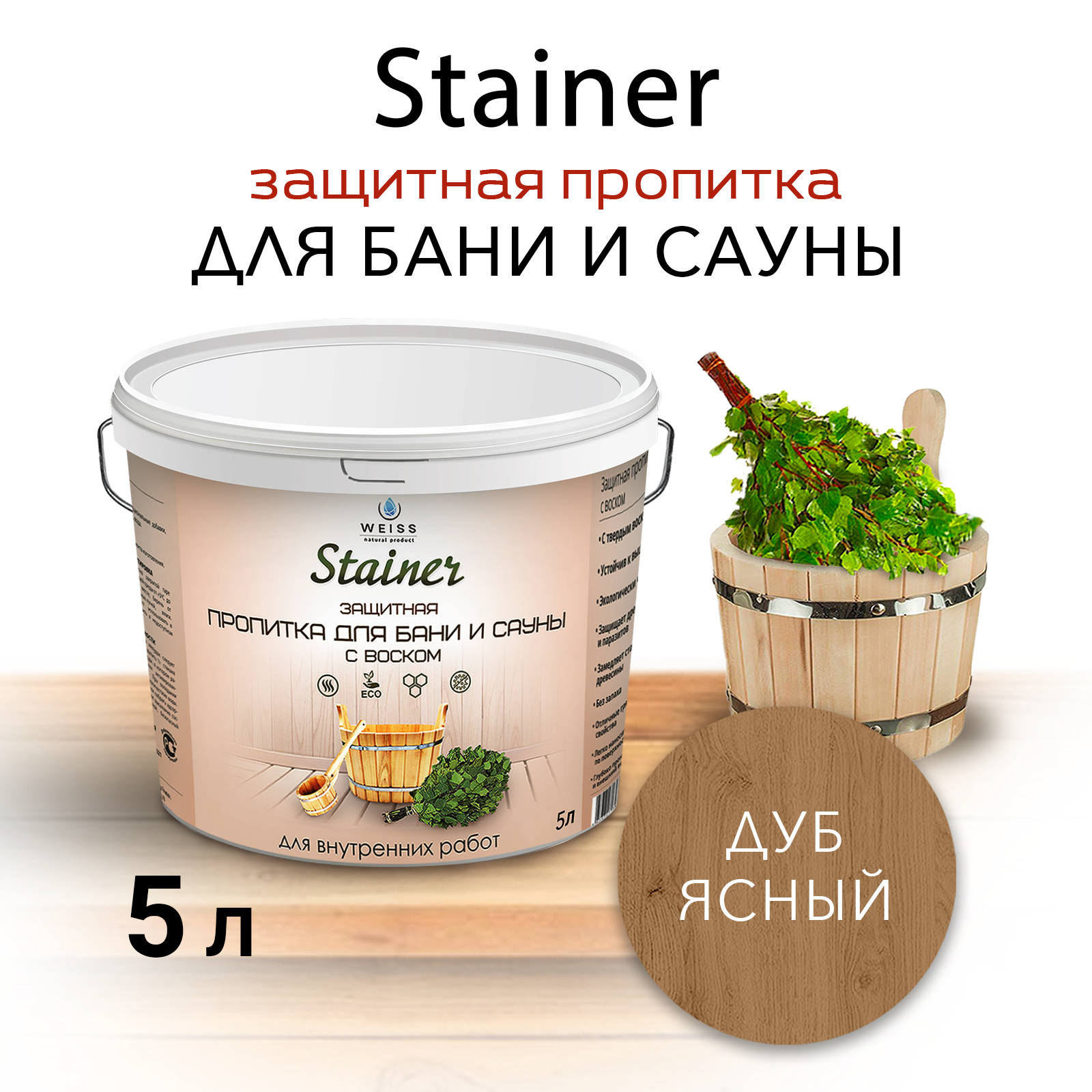 Купить Защитная пропитка для бани и сауны с воском Stainer, 5л Дуб ясный 028,защитная лазурь