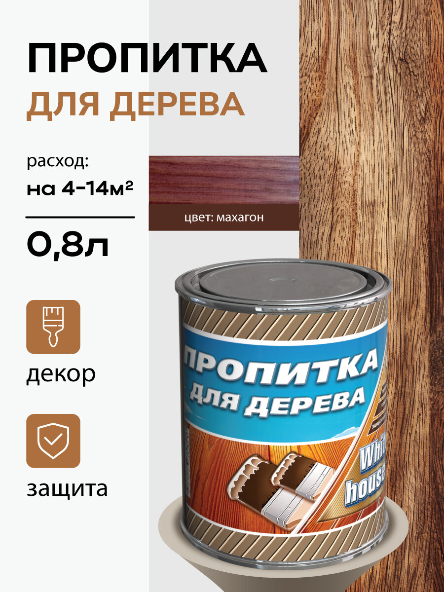 Пропитка для Дерева White House 0.8л Махагон, Полуматовая, Алкидная с Антисептиком, Матовая для Внутренних и Наружных Работ.