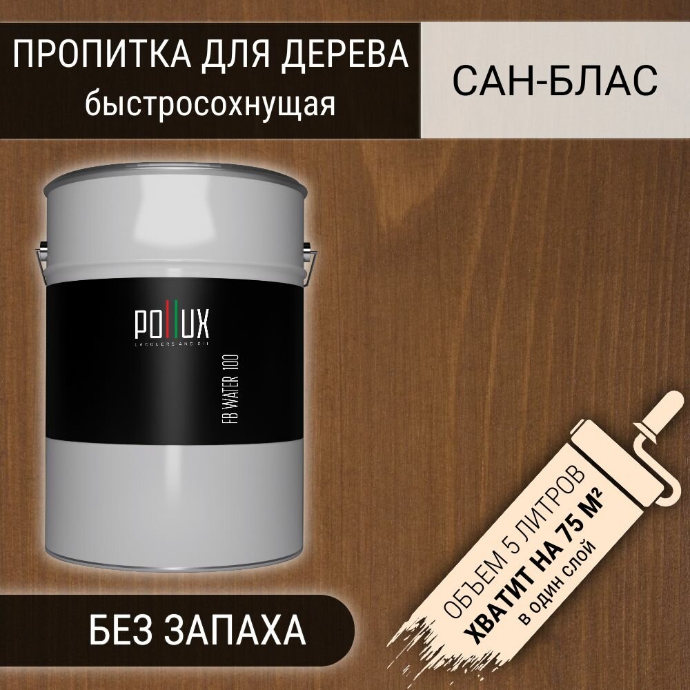 СохранитьПропитка для дерева для наружных и внутренних работ влагостойкая Pollux FB 100 "Сан-Блас" 3 в 1, антисептик / лазурь / грунтовка для древесины, быстросохнущая, цвет коричневый, 5 литров интересное: