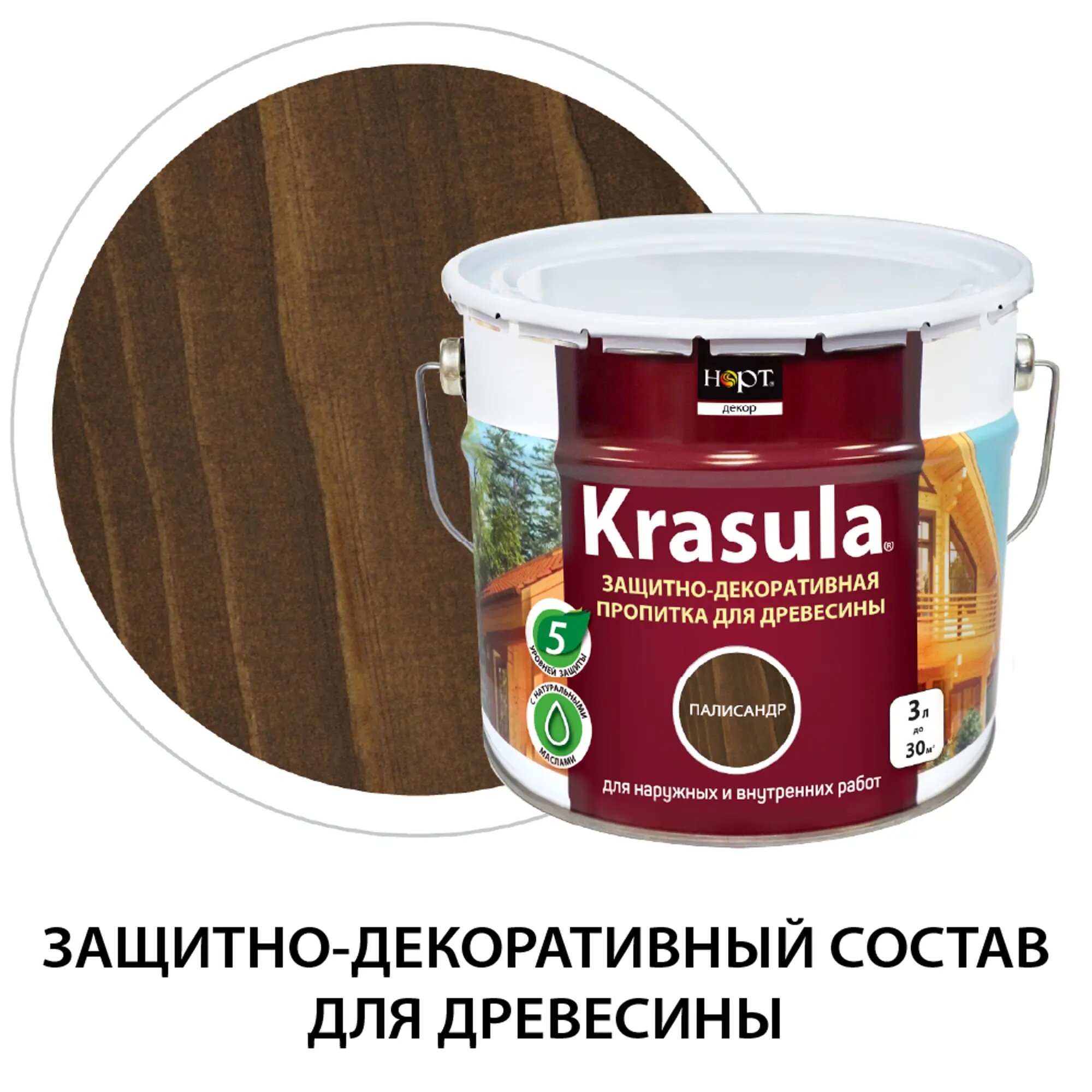 Купить Krasula 3л палисандр, Защитно-декоративный состав для дерева и древесины Красула, пропитка, лазурь