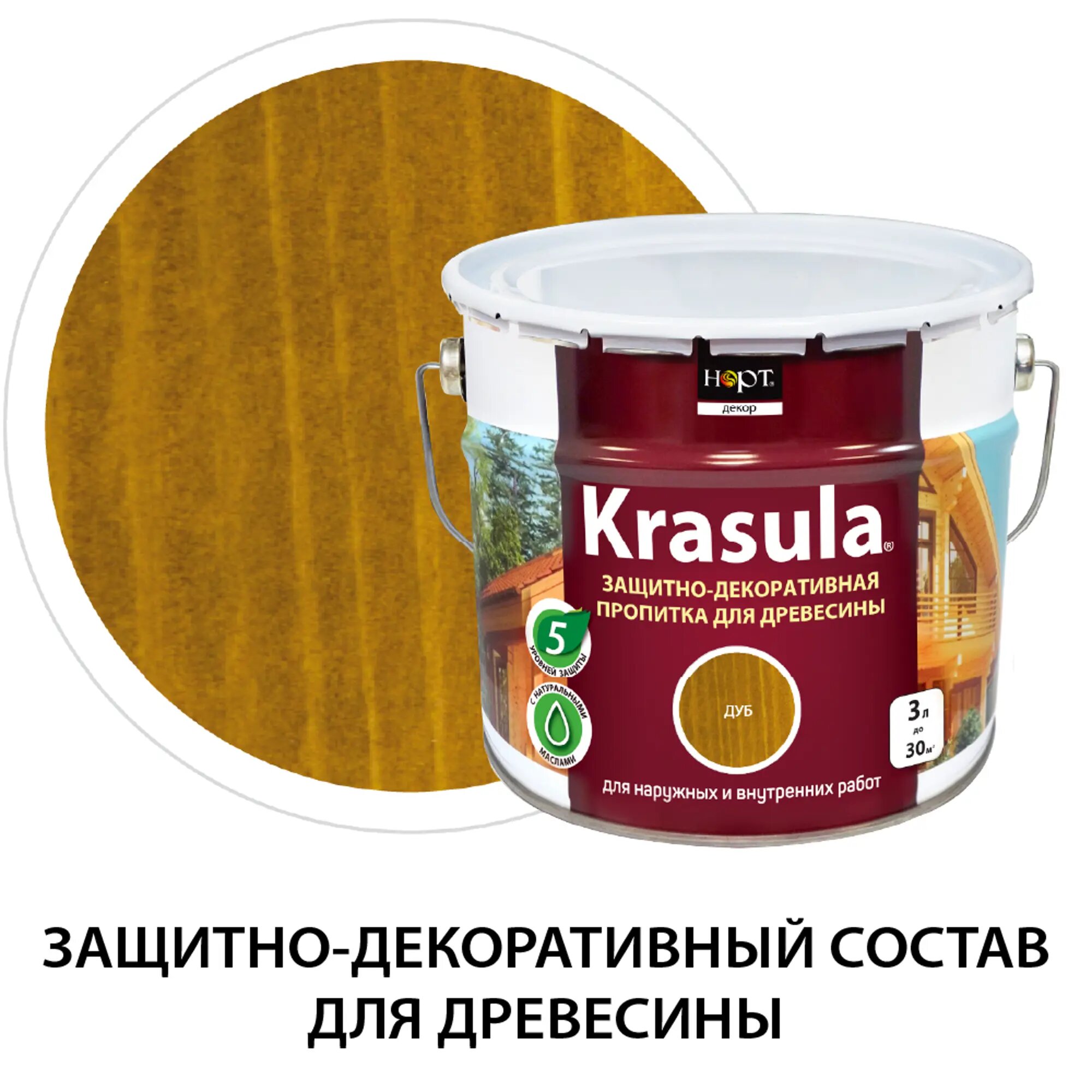 Купить Krasula 3л дуб, Защитно-декоративный состав для дерева и древесины Красула, пропитка, лазурь