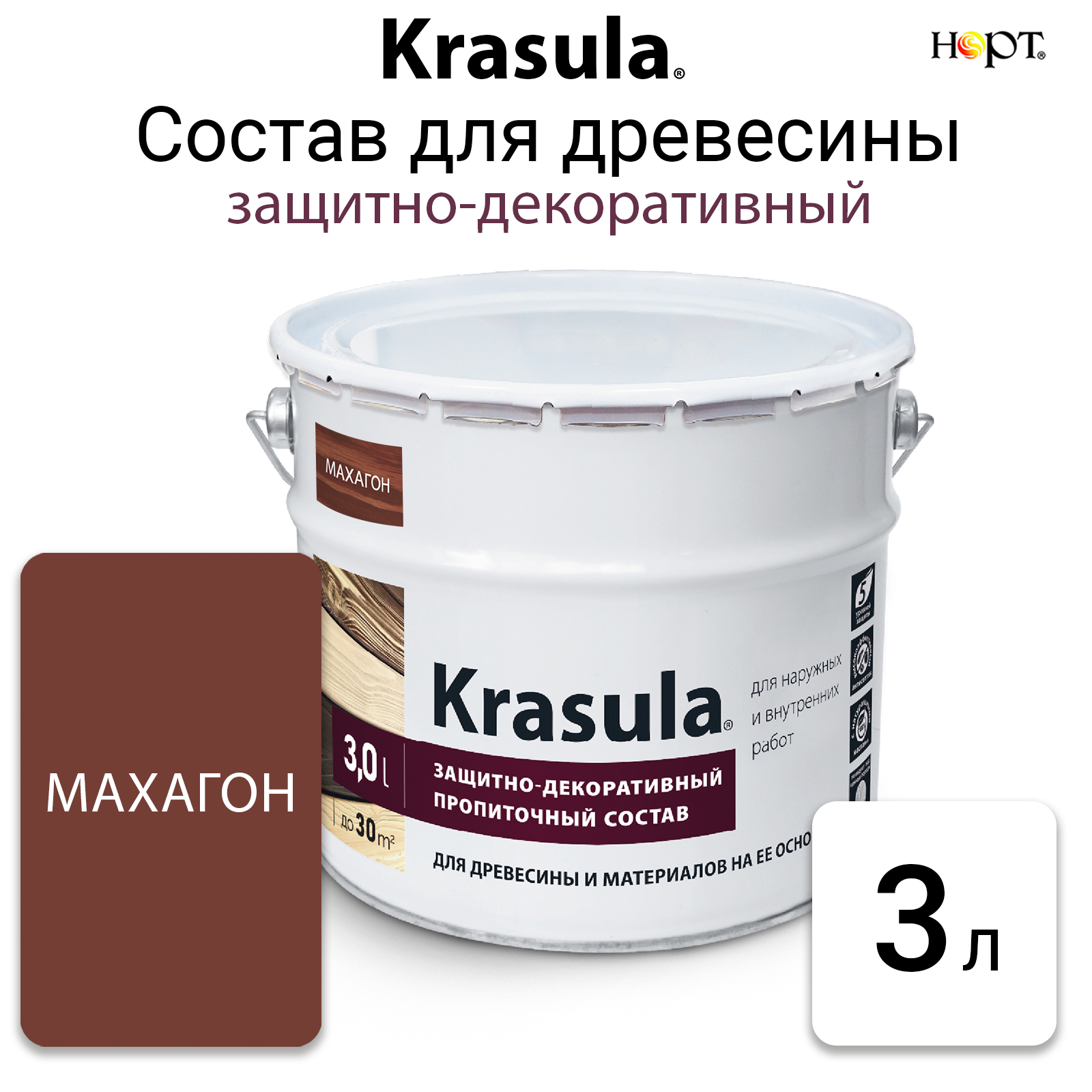 Купить Krasula 3л махагон, Защитно-декоративный состав для дерева и древесины Красула, пропитка, лазурь