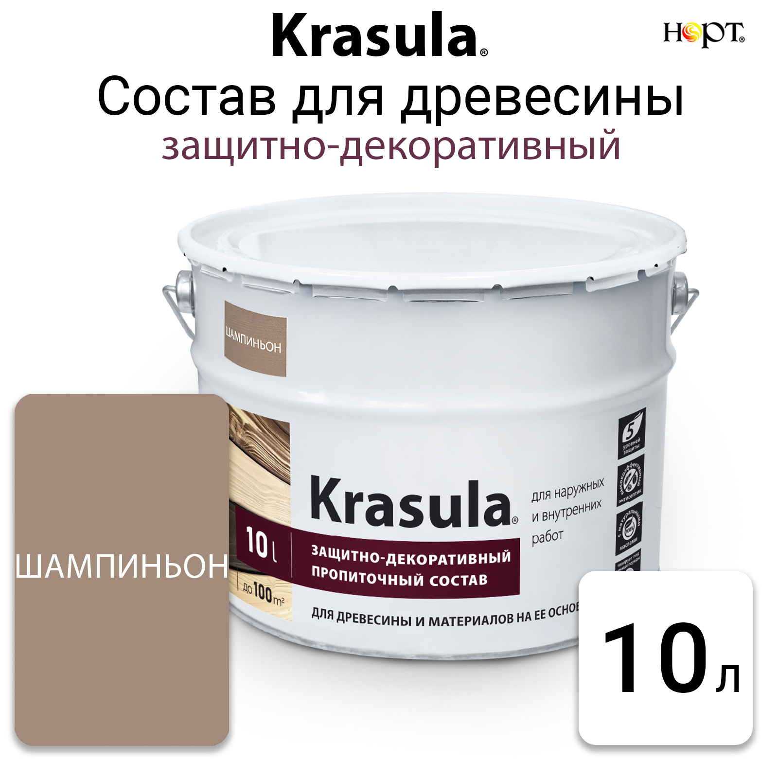 Купить Krasula 10л шампиньон, Защитно-декоративный состав для дерева и древесин