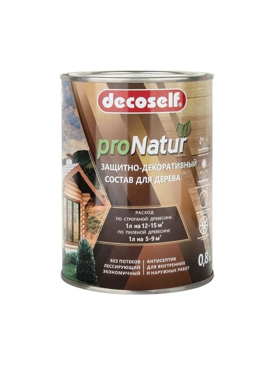 Декоселф декоративная пропитка по дереву бесцветная (0,8л) / DECOSELF ProNatur защитно-декоративный антисептик для дерева бесцветный (0,8л)