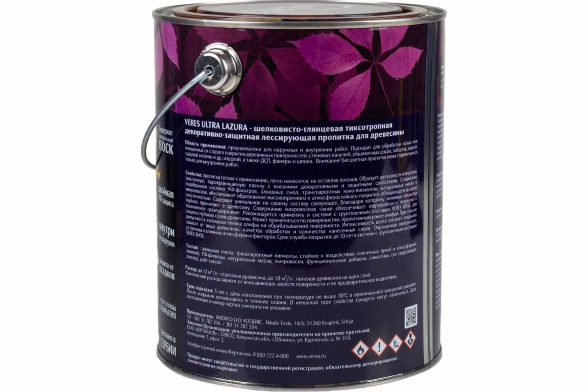 Ниже Вы можете прочитать отзывы на Декоративная пропитка для дерева Veres Ultra Lazura №9, глянцевая, 2,7 л, палисандр, ознакомится с подробными характеристиками, посмотреть интересные обзоры и фотографии на Декоративная пропитка для дерева Veres Ultra Lazura №9, глянцевая, 2,7 л, палисандр.
