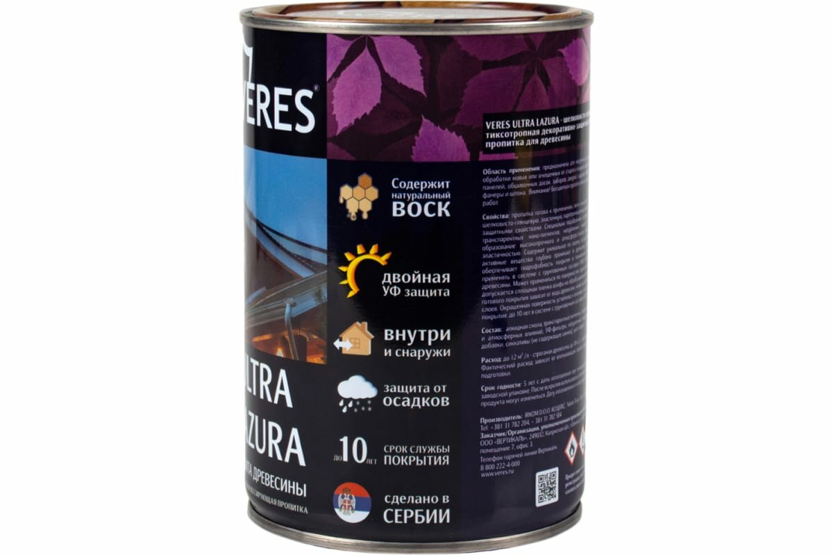 СохранитьЛессирующая пропитка для древесины Veres Ultra Lazura (0,9 л 17 Золотой бор ) интересное: