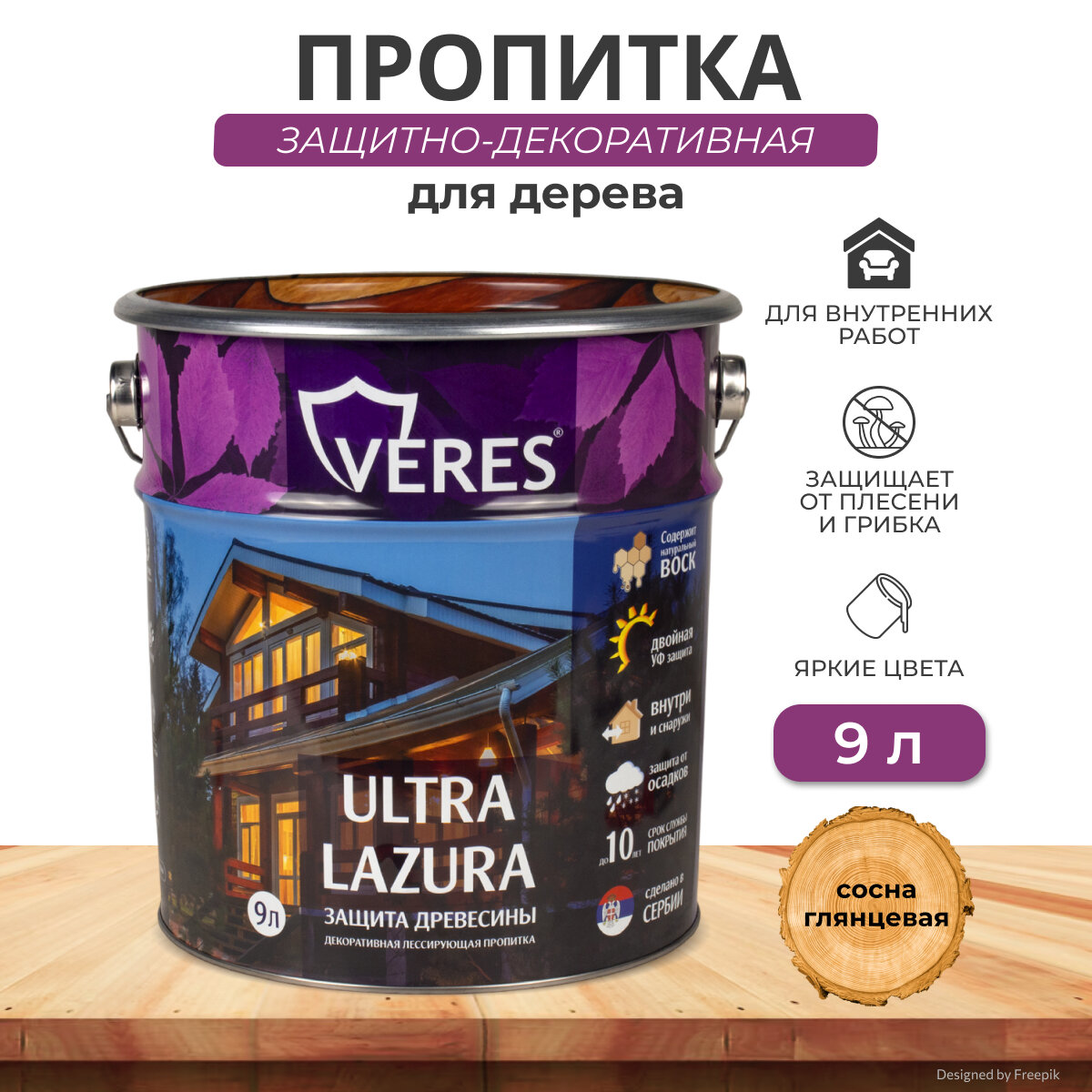 Купить Декоративная пропитка для дерева Veres Ultra Lazura №2, глянцевая, 9 л, сосна