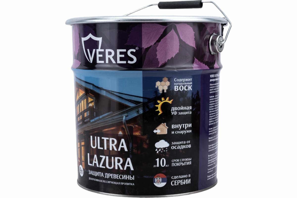 Декоративная пропитка для дерева Veres Ultra Lazura №9, глянцевая, 9 л, палисандр
