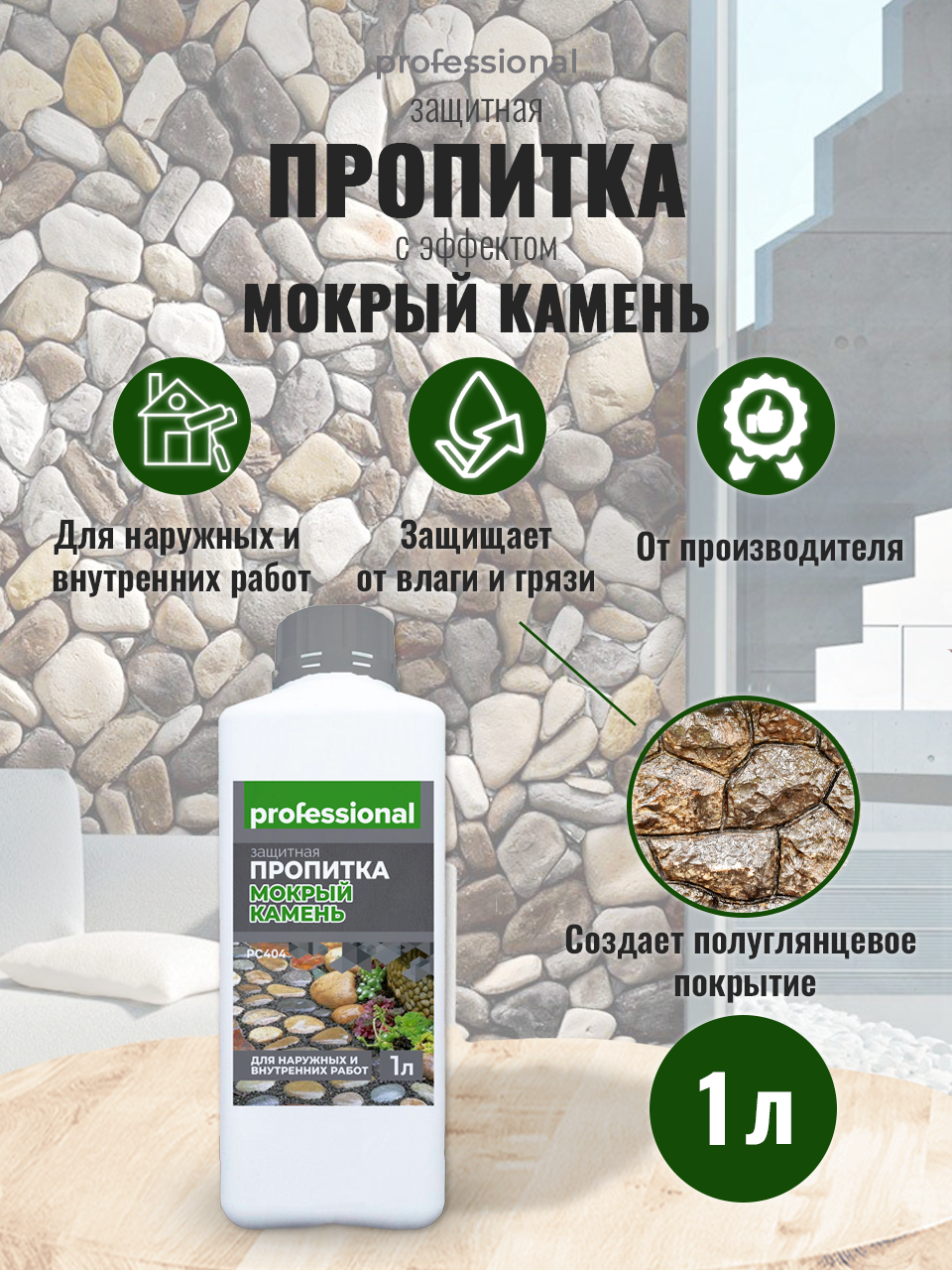 Пропитка водоотталкивающая для камня, для кирпича PROFESSIONAL с эффектом "Мокрый камень" 1л интересное: