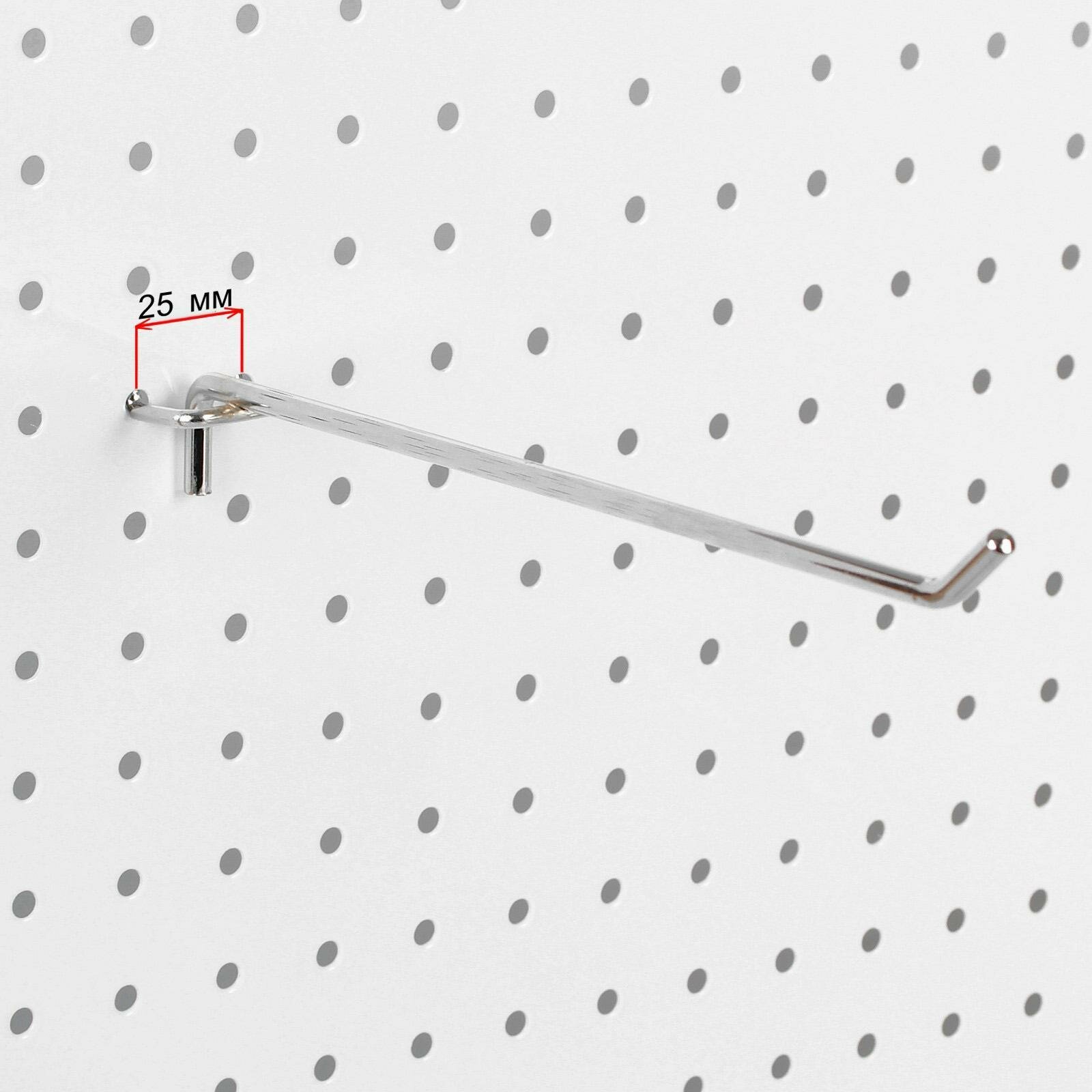 Крючок одинарный для металлической перфорированной панели, шаг 25 мм, d=6 мм, L=300мм, цвет хром 10шт. интересное: