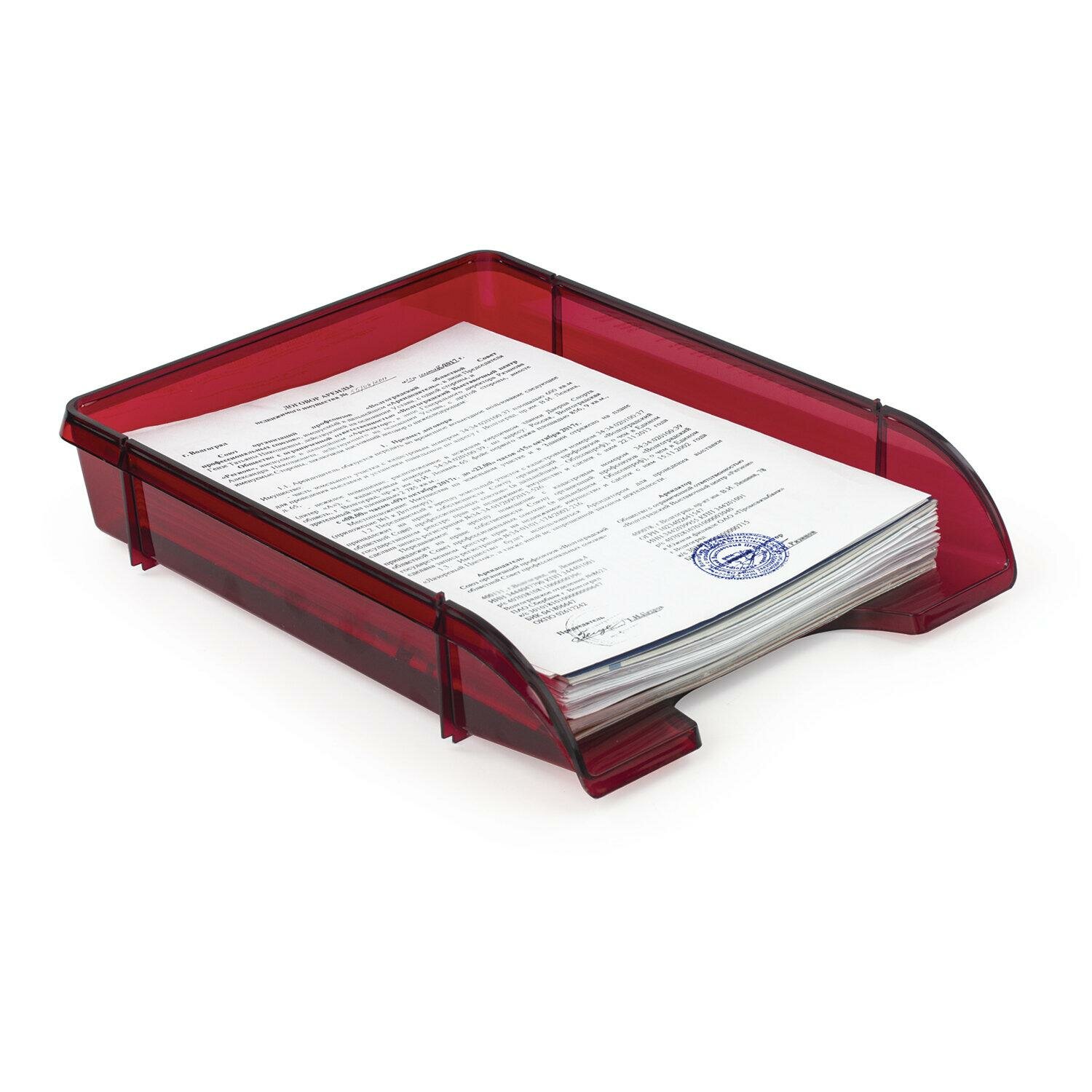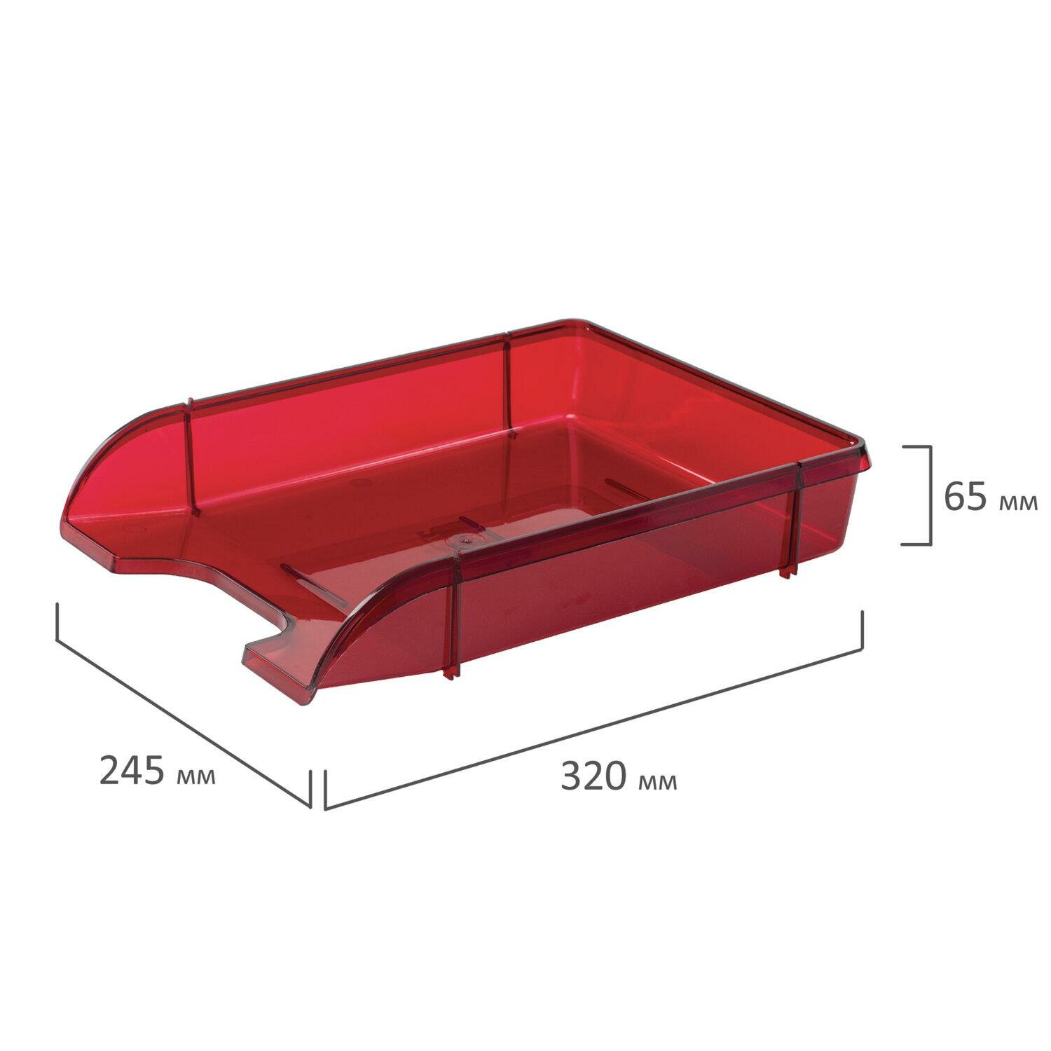 Лоток горизонтальный для бумаг BRAUBERG "Office style", 320х245х65 мм, тонированный красный, 237291
