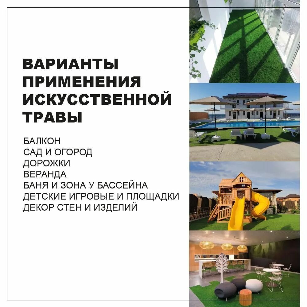 | Дополнительная информация | Газон из экологически чистого 100% полиэтилена. Материал не требователен в уходе, легко укладывается и так же легко демонтируется, обладает защитой от ультрафиолетовых лучей. |