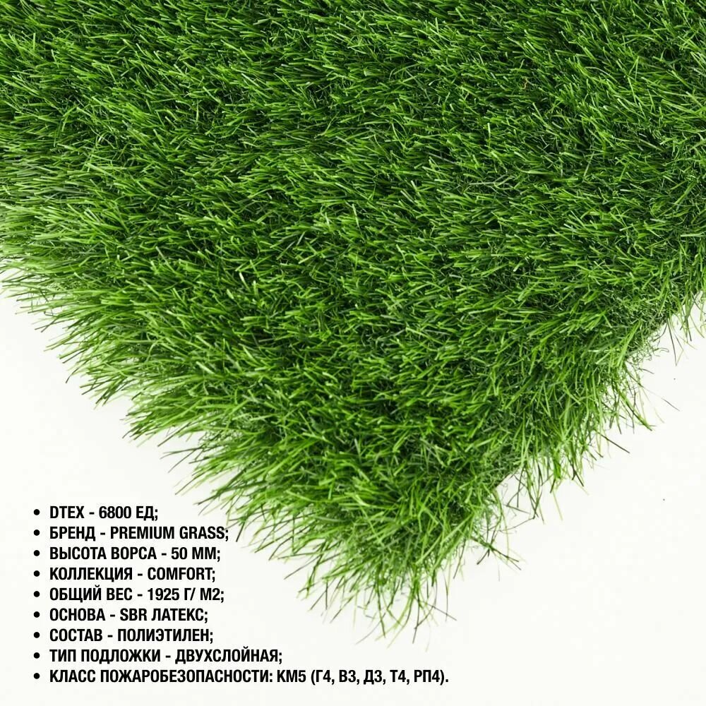 Искусственный газон 2х4 м. в рулоне Premium Grass Comfort 50 Green, ворс 50 мм. Искусственная трава. 5188952-2х4