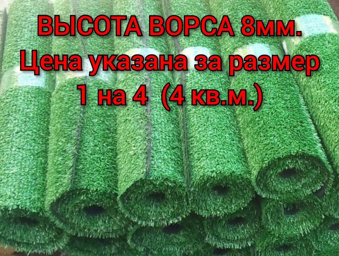 Купить Искусственный газон 1 на 4 (высота ворса 8мм) общая толщина 11мм. декоративная трава