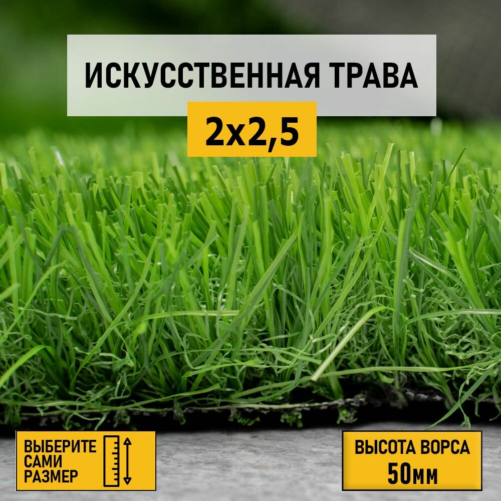 Искусственный газон 2х2,5 м в рулоне Premium Grass Elite 50 Green Bicolor, ворс 50 мм. Искусственная трава. 4844736-2х2,5