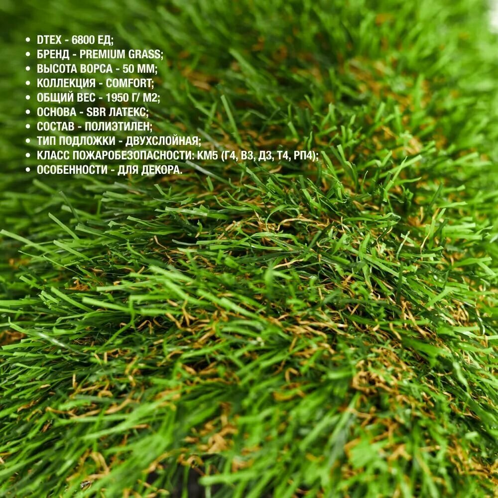 Искусственный газон 2х5 м. в рулоне Premium Grass Comfort 50 Green Bicolour, ворс 50 мм. Искусственная трава. 5188957-2х5