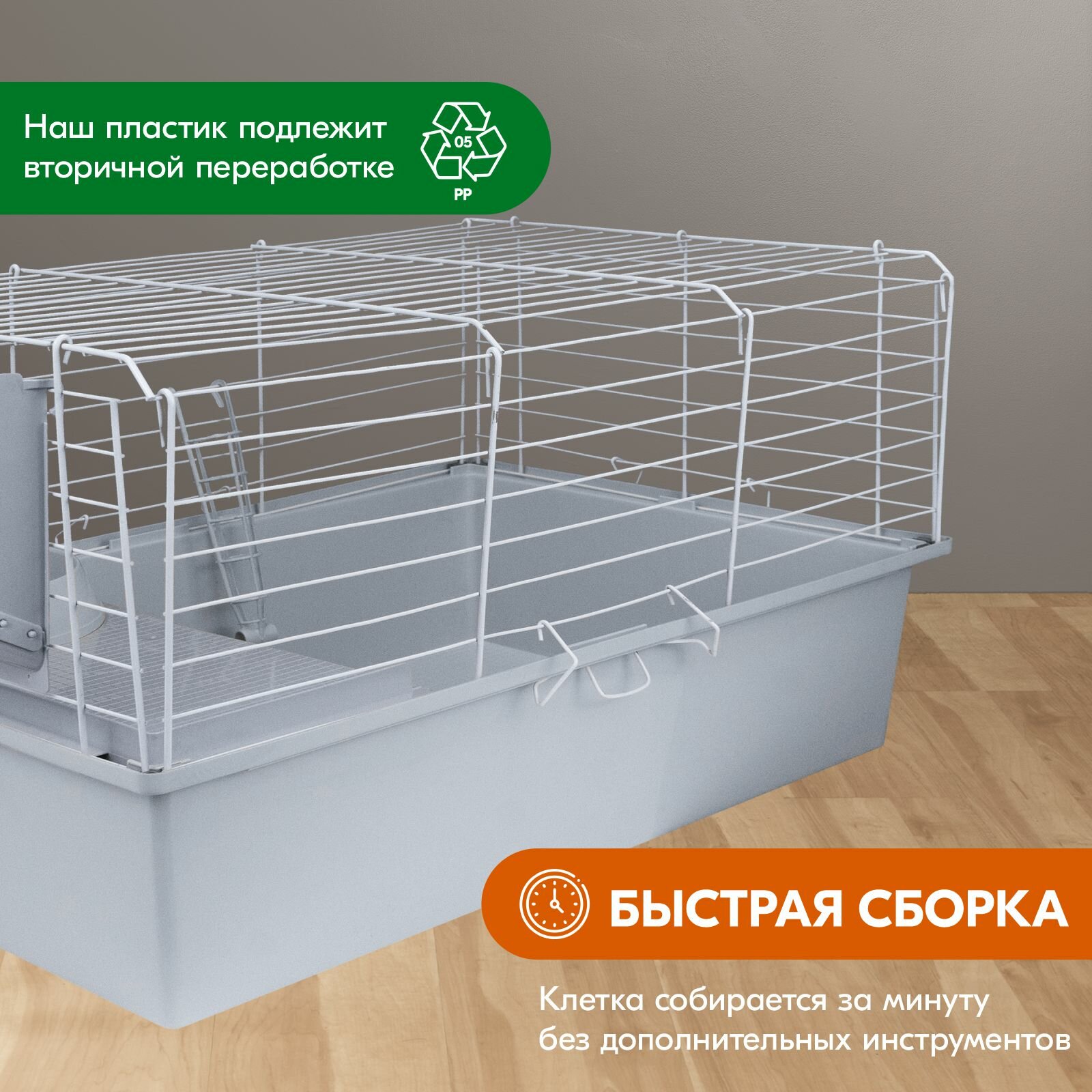 Купить Клетка для кроликов PetTails №1 складная, шаг прута до 25мм, 58*40*h34см (+миска, 2 кормушки) светло-серый-бел