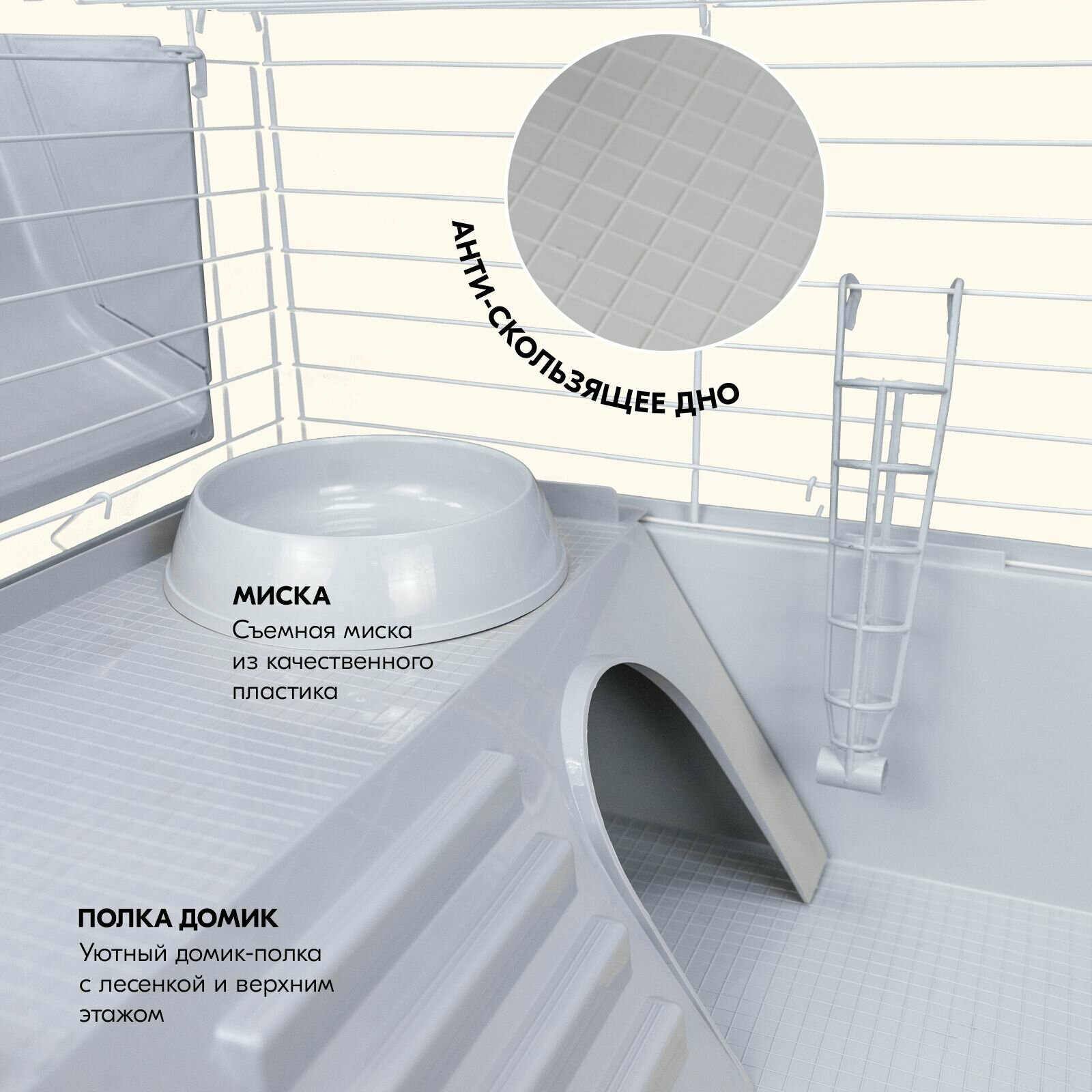 Клетка для кроликов PetTails №1 складная, шаг прута до 25мм, 58*40*h34см (+миска, 2 кормушки) светло-серый-бел интересное: