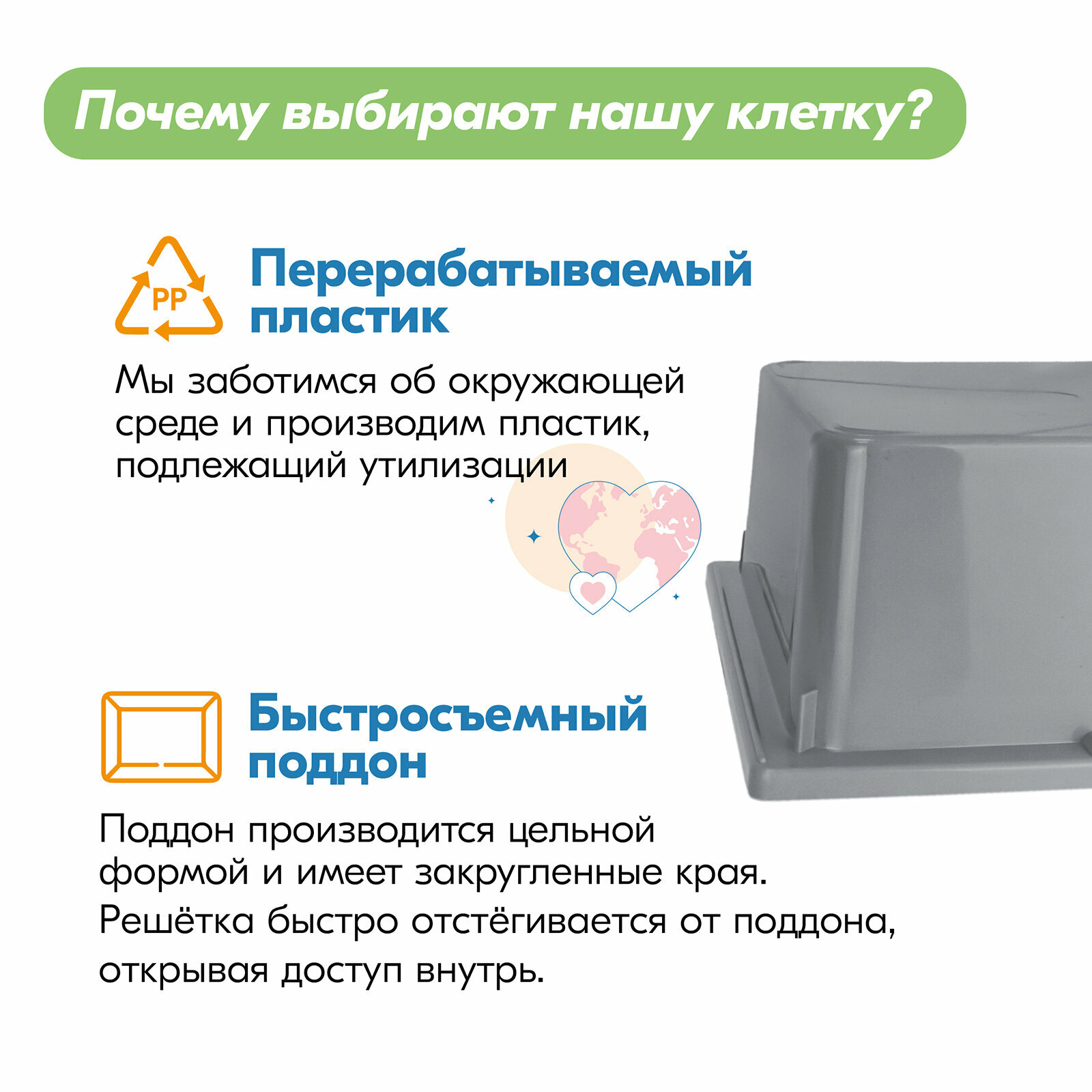Клетка ГЕРА-1 "PetTails" для грызунов разборная 60 х 40 х h45, 1 этаж, серая