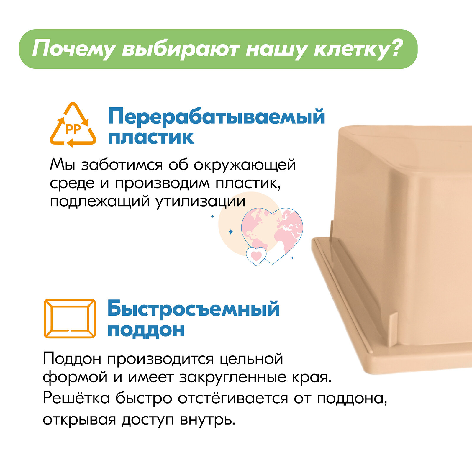 СохранитьКлетка для грызунов "PetTails" разборная, шаг прута 10,5мм, 42*30*h95см, 5 этажей (+полка-домик, колесо, миска, 2 пласт. домика) бежевая интересное: