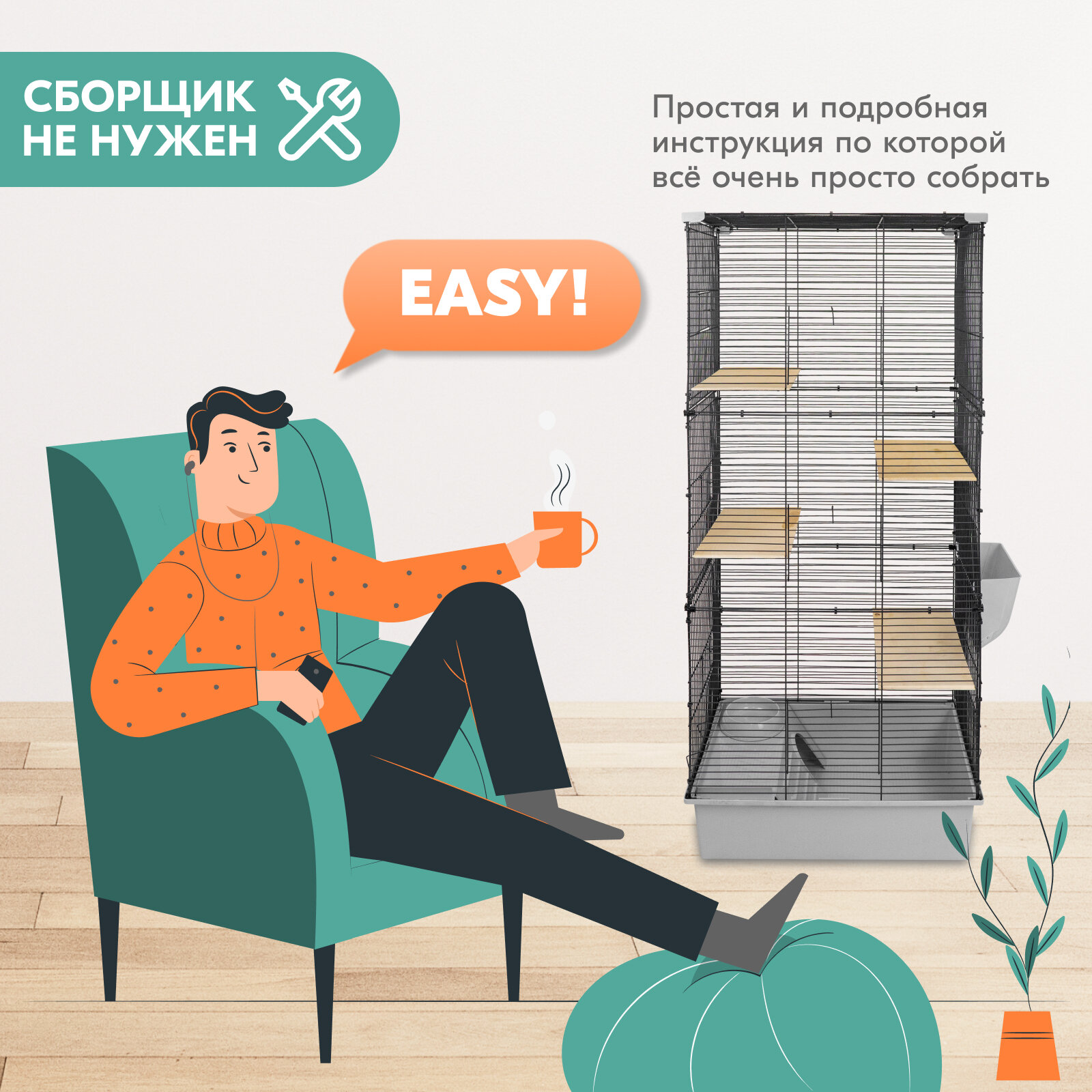 Клетка для шиншилл PetTails № 3, разборная, шаг прута до 14мм; 58х40хh129см, светло-серая интересное:
